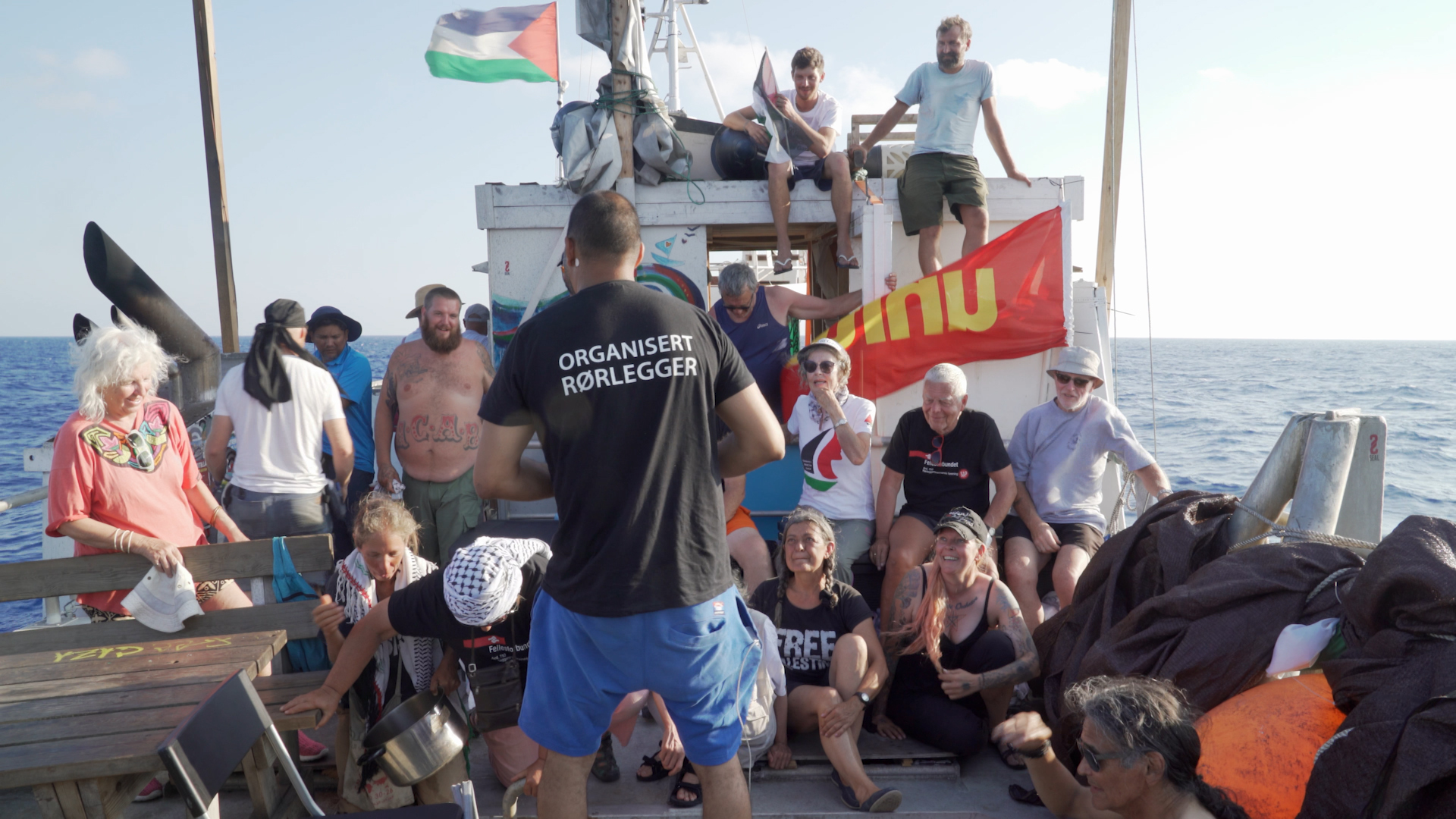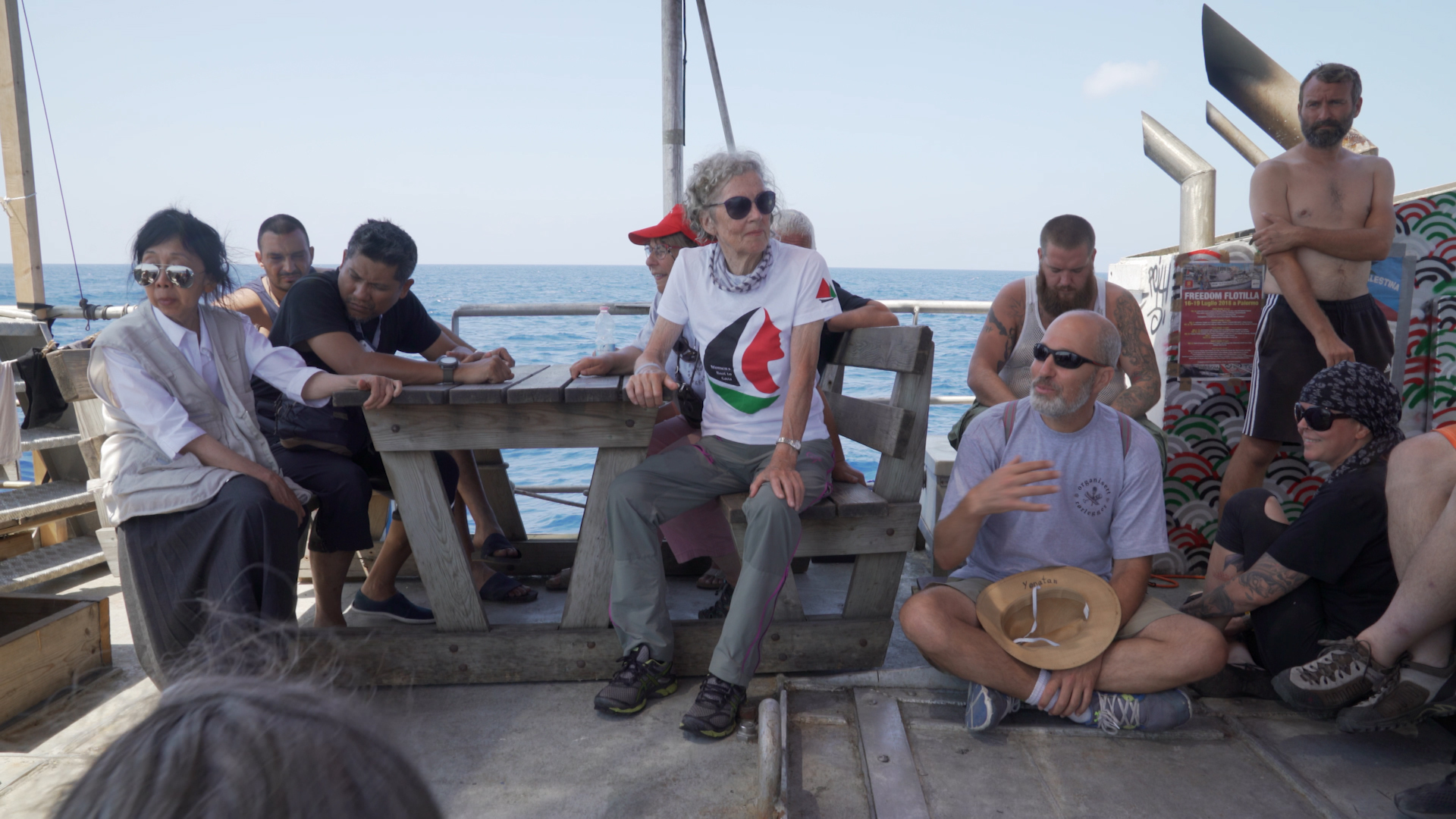 It is 2018, and we follow 22 activists aboard a fishing boat attempting to break the Israeli blockade of Gaza. As they cross the Mediterranean, the activists engage in rehearsals and discussions. The heart of the film lies not in the inevitable confrontation with the Israeli navy, but in the collective process: consensus decision-making, mutual care and a shared commitment to resisting injustice through non-violence. These ordinary people come together to put solidarity into practice. As their destination draws closer, the activists do their best to prepare for what past experience suggests will be a volatile—and possibly violent—encounter.